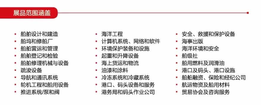 關(guān)鍵字延伸:船舶設(shè)計(jì)和建造、船塢和修船廠、船舶營(yíng)運(yùn)和管理、船舶登記和檢驗(yàn)、船舶修理機(jī)械與設(shè)備、疏浚設(shè)備、導(dǎo)航和通訊系統(tǒng)、輪機(jī)工程和船用設(shè)備、推進(jìn)系統(tǒng)/泵和閥、海洋工程、計(jì)算機(jī)系統(tǒng)、網(wǎng)絡(luò)和軟件、環(huán)境保護(hù)裝備和設(shè)施、起重和升降設(shè)備、海上貨運(yùn)和物流、油漆和涂料、冷凍系統(tǒng)和冷藏系統(tǒng)、港口,碼頭設(shè)備和服務(wù)、港務(wù)局和碼頭作業(yè)公司、安全,救援和保護(hù)設(shè)備、海事出版、海洋環(huán)境和安全、船級(jí)社、船用燃料及潤(rùn)滑油、港口及碼頭,港口設(shè)備、船舶融資、保險(xiǎn)和經(jīng)紀(jì)公司、船運(yùn)物資及船用材料、貿(mào)易協(xié)會(huì)及咨詢服務(wù)