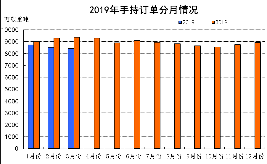 2019年1~3月份,國際航運市場低位震蕩,全球新船訂單量同比大幅下降。我國造船完工量保持增長,但新承接訂單量和手持船舶訂單同比下降。重點監(jiān)測企業(yè)工業(yè)總產(chǎn)值等主要經(jīng)濟指標止跌回升。