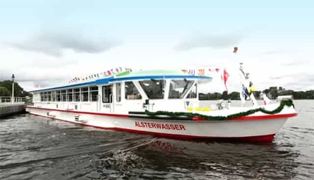 該游船25.5米長、5.36米寬,總重72噸,速度可達(dá)8節(jié),推進(jìn)動力功率為100kW級,由德國Proton Motor 公司提供的2臺48kW電池系統(tǒng)組成,采用35MPa高壓儲氫技術(shù),具備12個氫燃料儲罐,一次可攜帶氫燃料50kg ,可連續(xù)運(yùn)行2至3天。該船的成功運(yùn)行證明了氫燃料電池的可靠性。
