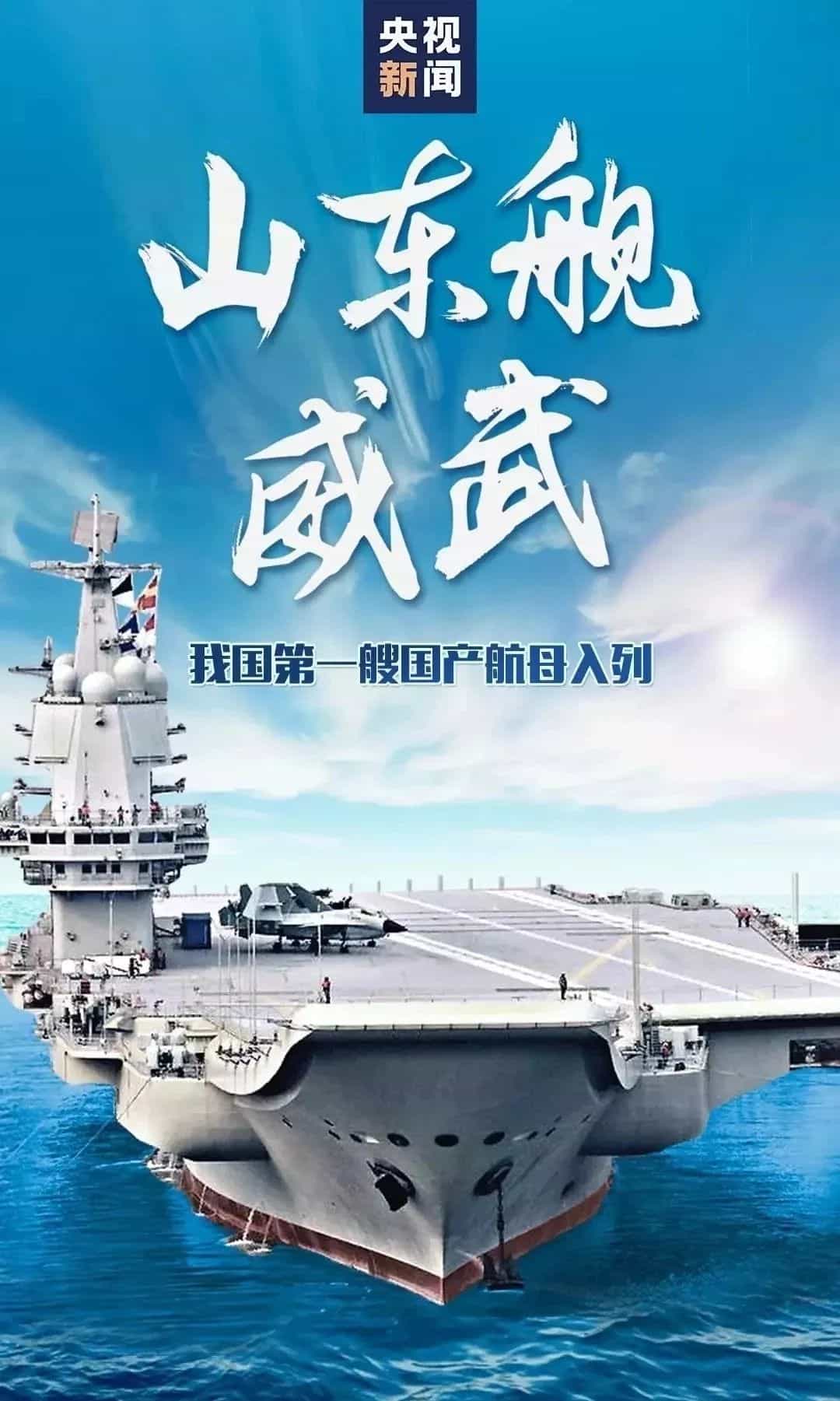 我國第一艘國產(chǎn)航空母艦山東艦17日下午在海南三亞某軍港交付海軍。中共中央總書記、國家主席、中央軍委主席習(xí)近平出席交接入列儀式。經(jīng)中央軍委批準(zhǔn),我國第一艘國產(chǎn)航母命名“中國人民解放軍海軍山東艦”,舷號“17”。