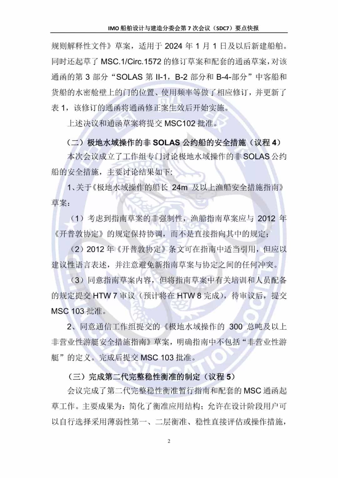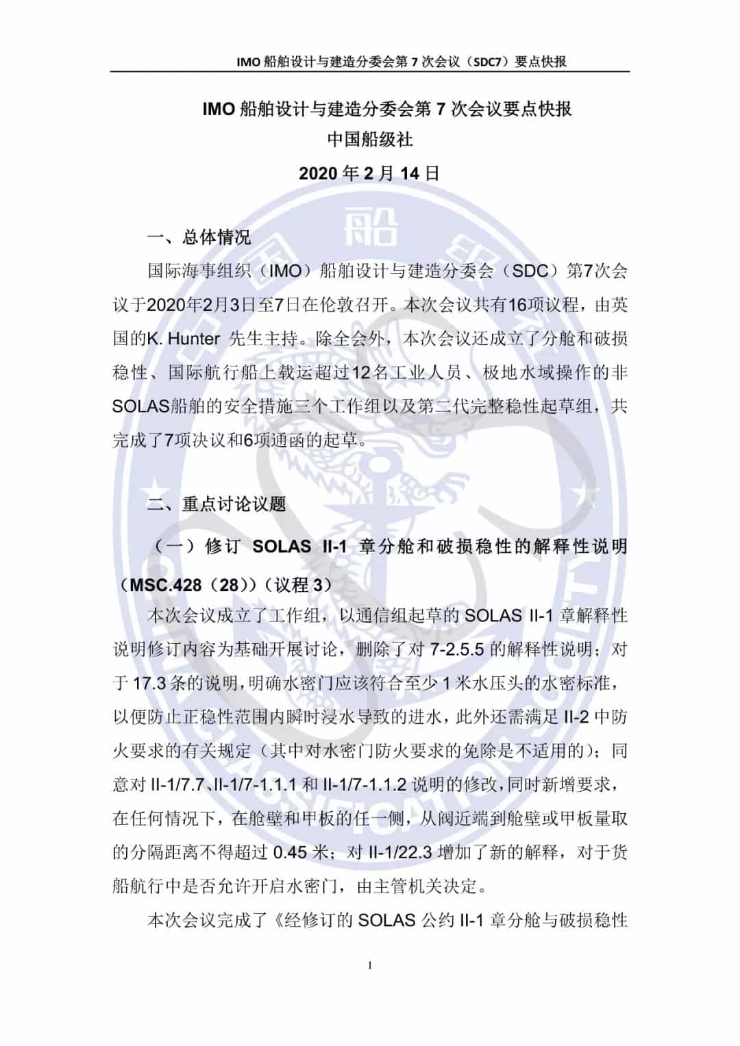 IMO船舶設(shè)計(jì)與建造分委會(huì)第7次會(huì)議要點(diǎn)快報(bào)