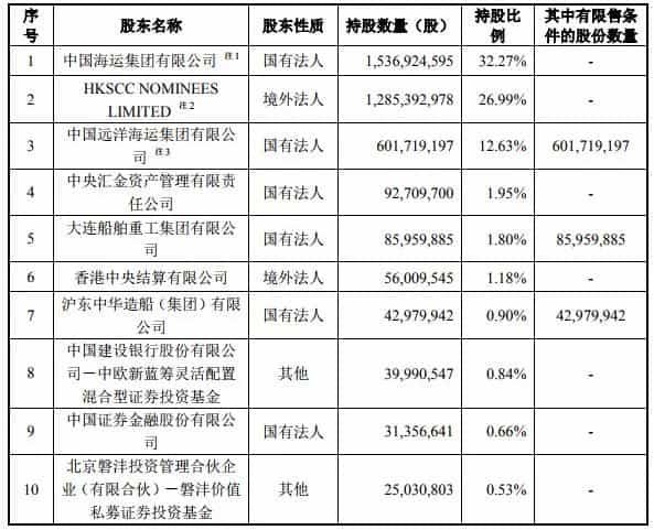 1.大船集團與滬東中華入股中遠海能