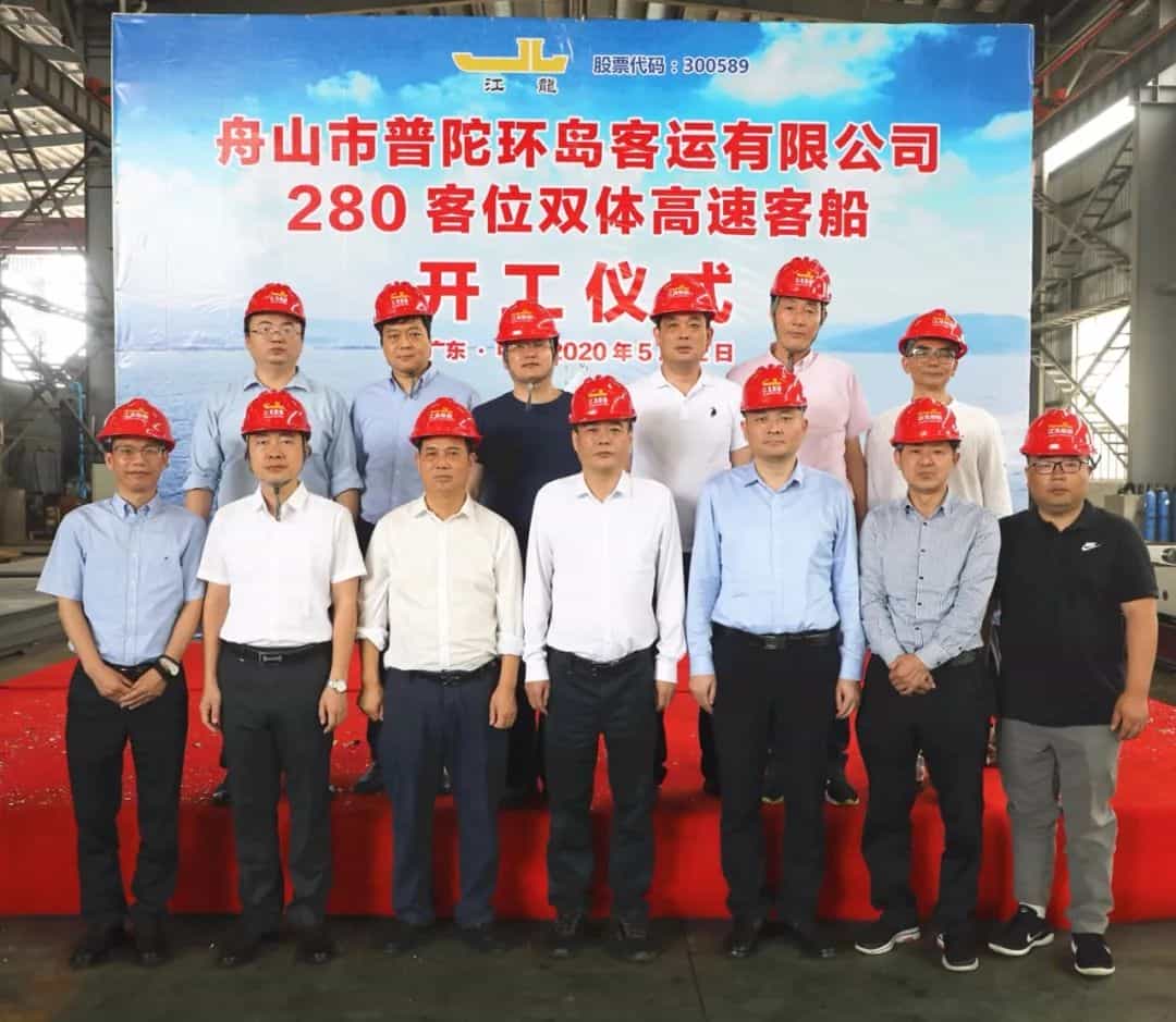 舟山普陀交通投資發(fā)展集團(tuán)有限公司黨委書記、董事長(zhǎng)徐舟,黨委副書記張運(yùn),舟山市普陀環(huán)島客運(yùn)有限公司總經(jīng)理樂五益,江龍船艇董事長(zhǎng)晏志清、中山分公司總經(jīng)理譚永燦等出席開工儀式。