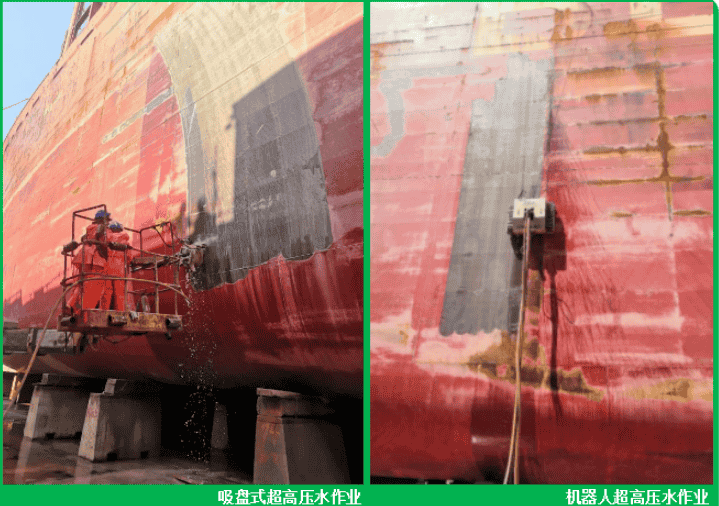 目前,威海金陵船廠全力推進(jìn)綠色修船、科技修船。4月29日,在進(jìn)塢修理的“BERGE HAKODATE”輪上首次使用吸盤(pán)和機(jī)器人進(jìn)行外板滿(mǎn)扒油漆作業(yè)。繼本月中旬首次采用超高壓水對(duì)塢修船舶進(jìn)行外板除銹作業(yè)后,威海金陵船廠本次利用吸盤(pán)和機(jī)器人2500公斤的水壓對(duì)外板原始油漆及生銹腐蝕部位進(jìn)行清潔處理,不僅滿(mǎn)足環(huán)保要求,而且大幅提高生產(chǎn)效率。今后將在水回收、處理、更大范圍推廣應(yīng)用等事項(xiàng)上進(jìn)行研究實(shí)施。