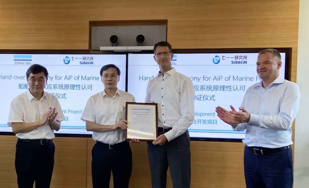 2020年8月31日,中國船舶集團第七一一研究所(簡稱“七一一所”)船舶燃氣推進供應系統(tǒng)(FGSS)獲得DNV GL原理認可(AIP)。