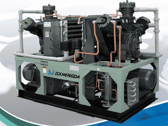 江蘇恒達生產(chǎn)的高壓艦、船用壓縮機在中國船用壓縮機領域?qū)崿F(xiàn)了大跨越,通過現(xiàn)代壓縮機的最新技術,將螺桿活塞串聯(lián)高壓空氣壓縮機,前置螺桿機作為低壓組,增大氣量,以此起到減少壓縮級數(shù)的作用,高壓級采用三級壓縮的活塞機組,電機通過皮帶分別將動力傳遞給活塞機和螺桿機,使得低壓機組與高壓機組同時工作,并實現(xiàn)空氣的高壓壓縮。