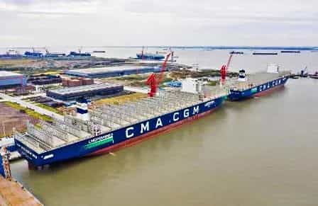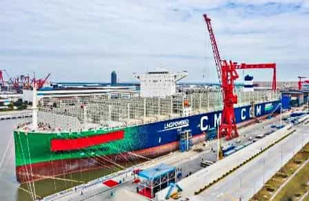 作為法國(guó)達(dá)飛輪船的聯(lián)合賣方,中國(guó)船舶集團(tuán)旗下江南造船和中國(guó)船舶工業(yè)貿(mào)易有限公司建造的23000TEU超大型雙燃料集裝箱船“達(dá)飛香榭·麗舍(CMA CGM CHAMPS ELYSEES)”號(hào)于10月27日正式命名交付。