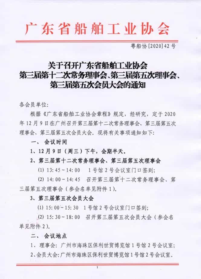 關(guān)于召開廣東省船舶工業(yè)協(xié)會第三屆第十二次常務(wù)理事會、第三屆第五次理事會、第三屆第五次會員大會的通知
