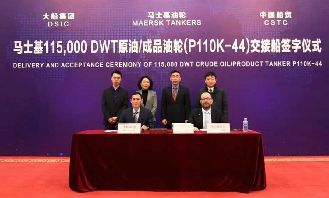 1月4日,中國船舶大船集團為馬士基油輪建造的11.5萬噸原油/成品油船44號船舉行簽字儀式。