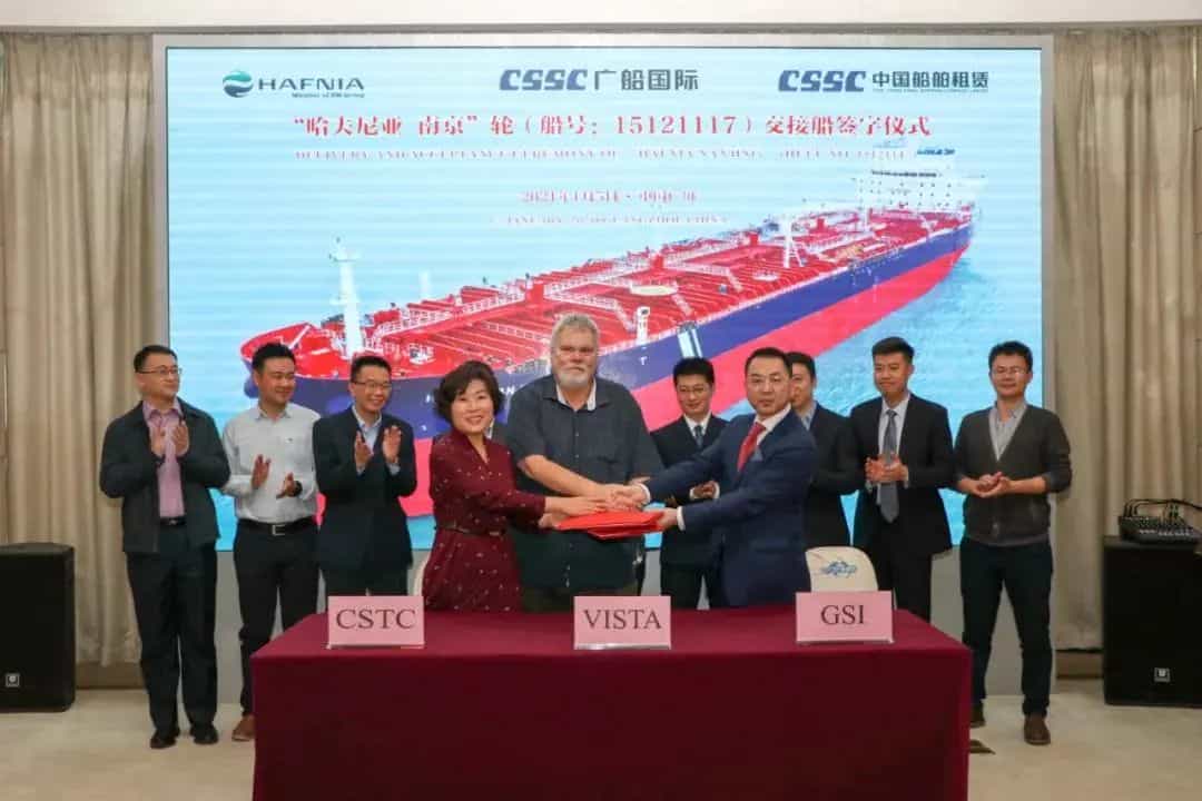 1月5日,由中國(guó)船舶集團(tuán)旗下廣船國(guó)際為VISTA Shipping建造的75000載重噸化學(xué)品/成品油船6號(hào)船“HAFNIA NANJING(哈夫尼亞·南京)”號(hào)簽字交船,標(biāo)志著廣船國(guó)際為該公司建造的7.5萬(wàn)噸化學(xué)品/成品油船系列船圓滿收官。