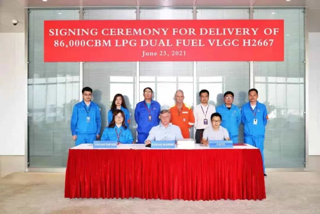 日前,按合同約定,第一艘船已正式交船,這也是當(dāng)今世界最大的86000立方米級LPG雙燃料VLGC,意味著著江南造船與EXMAR公司首次合作取得圓滿成功。