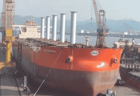 采用空氣潤滑技術是淡水河谷“生態(tài)航運計劃”的一部分,該計劃旨在助力公司應對減少碳排放的挑戰(zhàn),這與國際海事組織(IMO)的探討方向相一致。為了實現(xiàn)“生態(tài)航運計劃”,淡水河谷已經(jīng)在今年5月啟用世界上首艘配備旋翼帆的Guaibamax型VLOC“SEA ZHOUSHAN”號。該船同樣由新時代造船建造,在太平洋海洋工程(舟山)有限公司完成了旋翼帆安裝,計劃于7月底抵達巴西。
