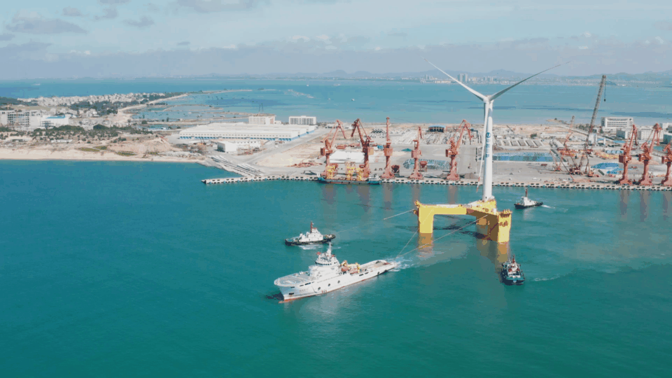 2018年起,依托廣東省有關科研項目,三峽能源聯(lián)合產業(yè)鏈相關企業(yè)在臺風頻繁、海況復雜、波浪惡劣等條件下,逐個攻破了抗臺風機組、半潛式基礎及系泊系統(tǒng)、動態(tài)電纜設計、 一體化安裝及拖航、風機+平臺一體化就位等漂浮式海上風電關鍵技術,主要方案均為國內自主的核心技術。