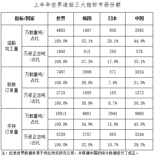 全國完工出口船1975萬載重噸,同比增長20.1%;承接出口船訂單3415萬載重噸,同比增長197.8%;6月底,手持出口船訂單7707萬載重噸,同比增長9.4%。出口船舶分別占全國造船完工量、新接訂單量、手持訂單量的94.4%、89.3%和89%。