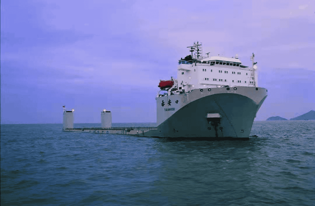 “泰安口”號(hào)由中國(guó)船舶集團(tuán)有限公司旗下廣船國(guó)際有限公司建造,于2002年交付,該船總長(zhǎng)156米,型寬36米,型深10米,貨物甲板面積4500平方米,可在海上垂直下潛至19米,主要用于托運(yùn)大型海工鋼結(jié)構(gòu)件、海上石油開(kāi)采平臺(tái)、艦船等。該船也是我國(guó)建造的首艘半潛船,填補(bǔ)了我國(guó)造船業(yè)的空白。
