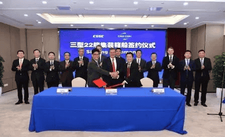 近年來,中國船舶集團與法國達飛集團戰(zhàn)略合作碩果累累。2017年9月,雙方簽訂了9艘全球首創(chuàng)最大、最先進23000TEU雙燃料動力集裝箱船建造合同。今年4月,雙方再度攜手,簽訂了6艘15000TEU雙燃料動力集裝箱船、6艘13000TEU雙燃料動力集裝箱船和10艘5500TEU常規(guī)動力集裝箱船等共3型22艘集裝箱船建造訂單,刷新了中國船舶集團承接單筆金額最大的集裝箱船訂單紀錄,法國達飛集團也成為中國船舶集團在集裝箱船領域全球最大的合作伙伴。
