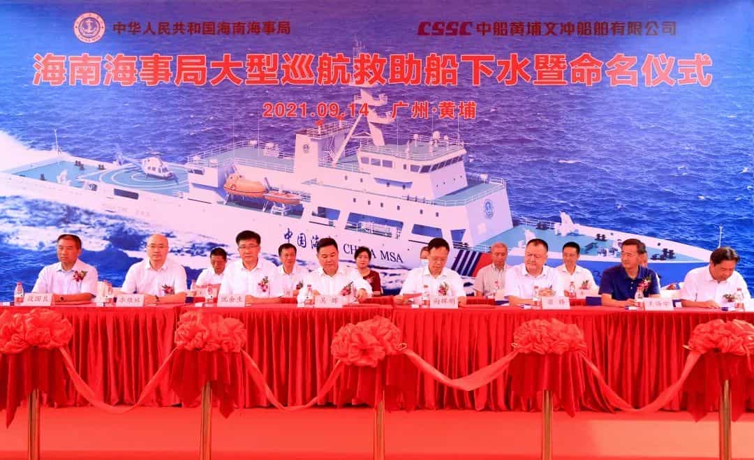 日前,海南海事局、中國(guó)船舶集團(tuán)有限責(zé)任公司旗下中船黃埔文沖船舶有限公司聯(lián)合在黃埔文沖長(zhǎng)洲廠區(qū)舉行大型巡航救助船“海巡03”號(hào)下水暨命名儀式。該船列編后將成為海南自貿(mào)港規(guī)模最大、裝備先進(jìn)、綜合能力強(qiáng)、具有世界領(lǐng)先水平的海事巡航救助船。