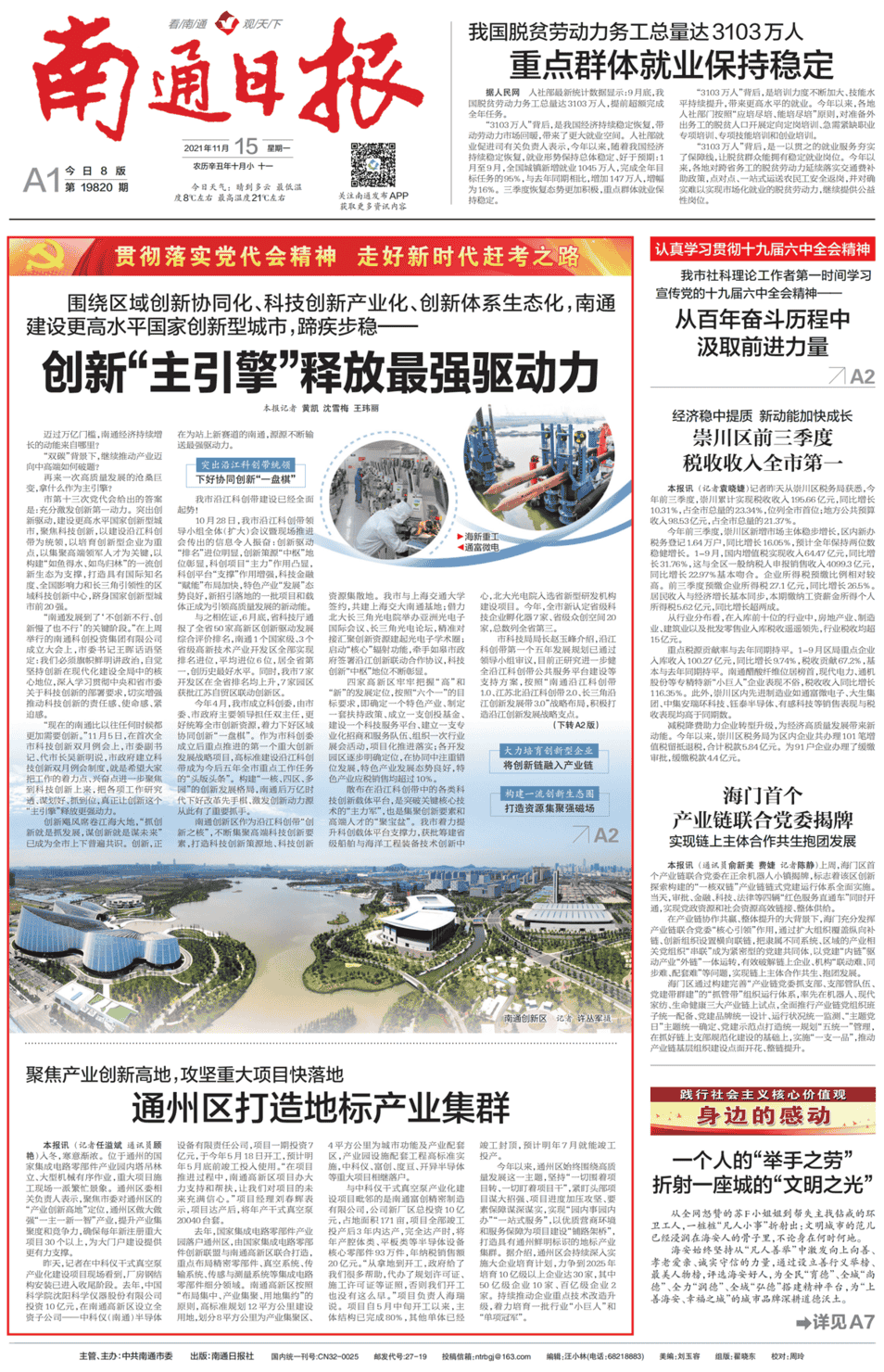 創(chuàng)新颶風席卷江海大地,“抓創(chuàng)新就是抓發(fā)展,謀創(chuàng)新就是謀未來”已成為全市上下普遍共識。創(chuàng)新,正在為站上新賽道的南通,源源不斷輸送最強驅動力。