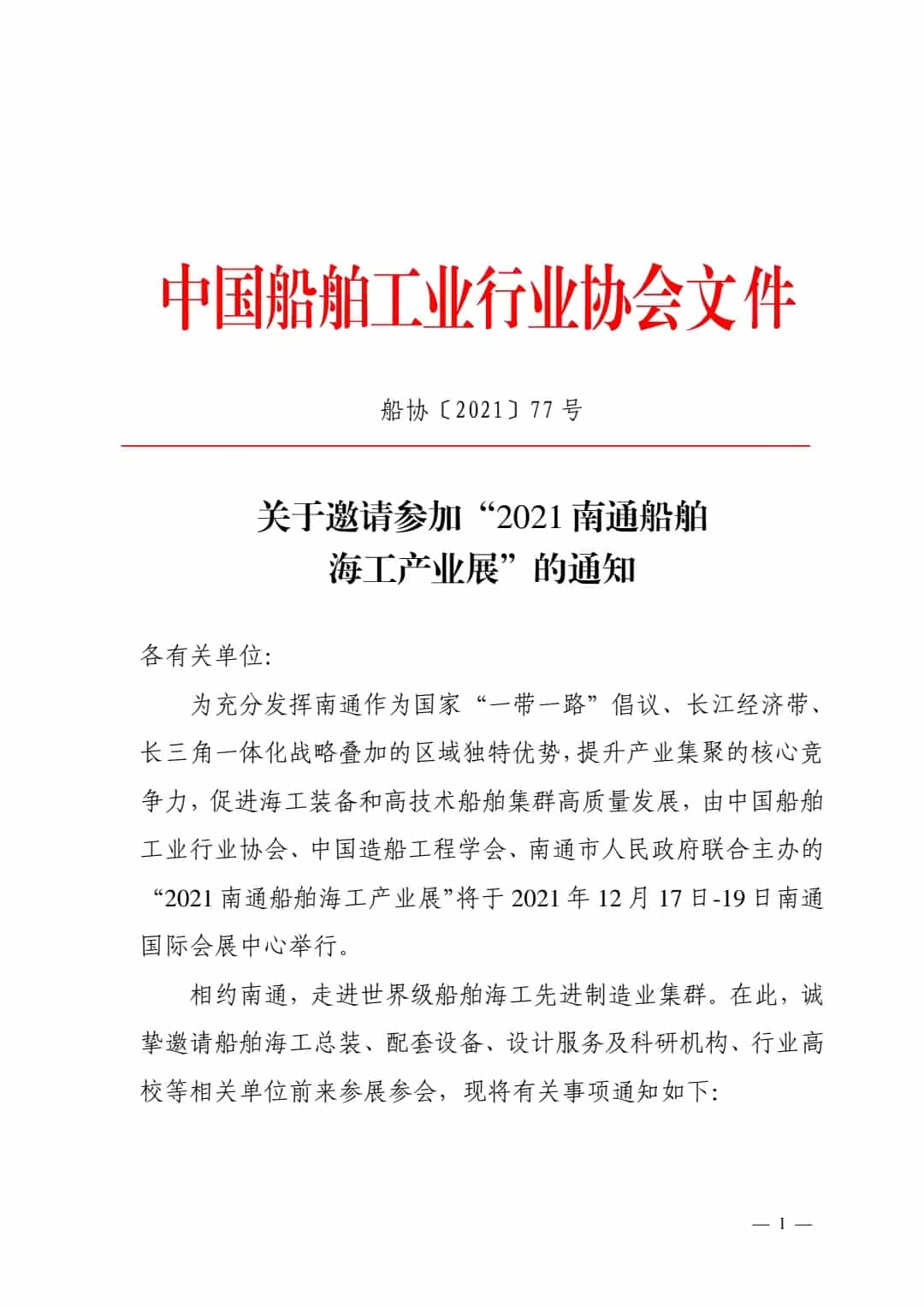關(guān)于邀請(qǐng)參加“2021南通船舶海工產(chǎn)業(yè)展”的通知