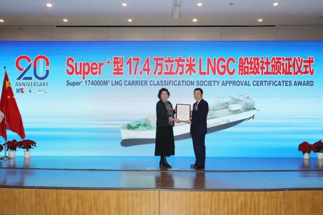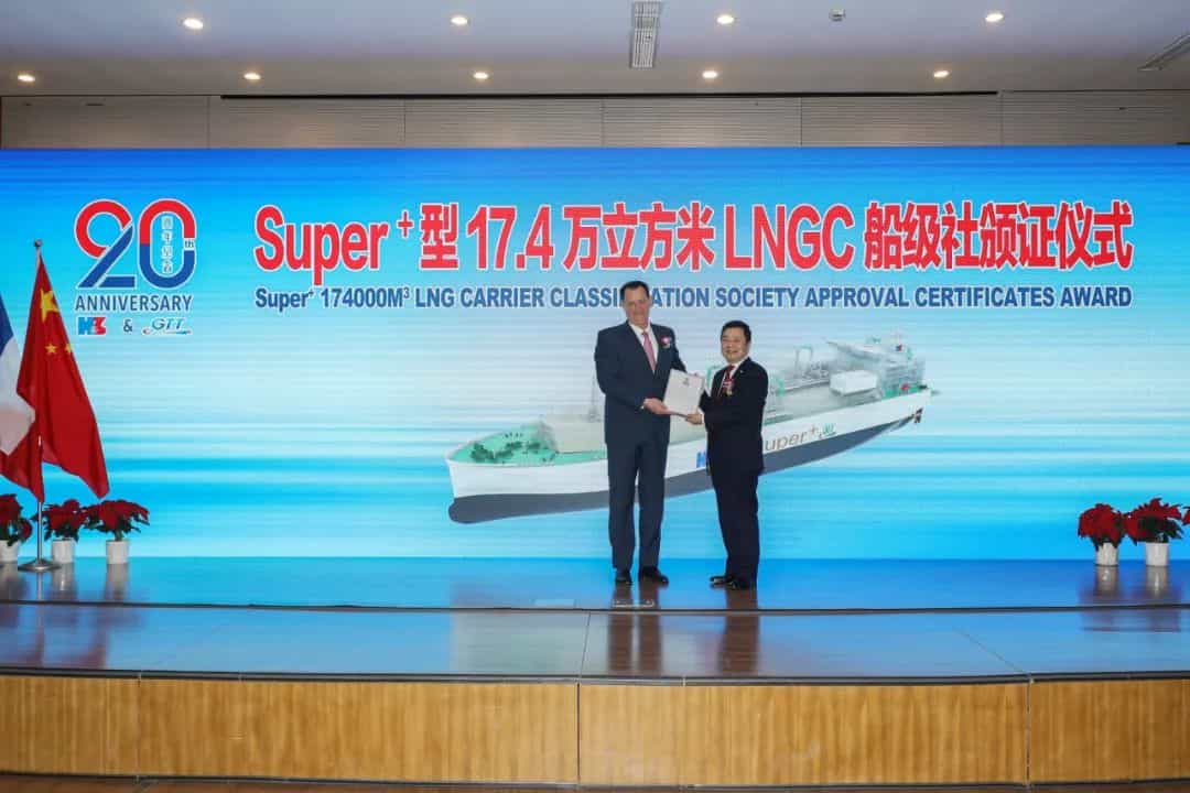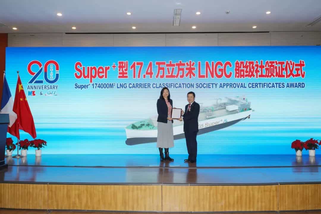 12月16日,由中國船舶集團(tuán)有限公司旗下滬東中華造船(集團(tuán))有限公司與法國GTT公司聯(lián)合研發(fā)的全球最新一代“長恒系列”17.4萬立方米液化天然氣(LNG)運(yùn)輸船獲得美國船級(jí)社(ABS)、法國船級(jí)社(BV)、英國勞氏船級(jí)社(LR)、DNV等4家國際著名船級(jí)社頒發(fā)的船型設(shè)計(jì)通用認(rèn)可(GDA)、入級(jí)預(yù)先認(rèn)可(PCA)等證書。