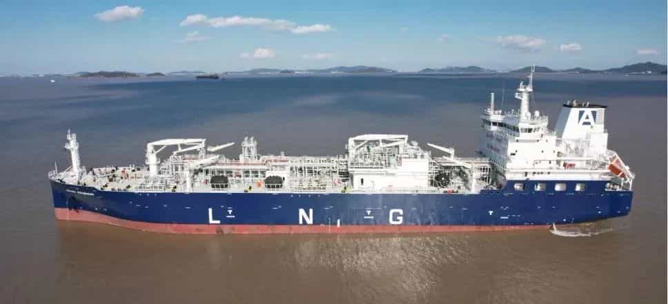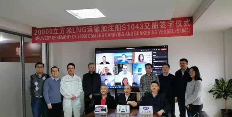 近日,南通中集太平洋海洋工程有限公司在浙江舟山以“云交付”方式向英國Avenir LNG公司順利交付全球最大20000立方米液化天然氣(LNG)運輸加注船。