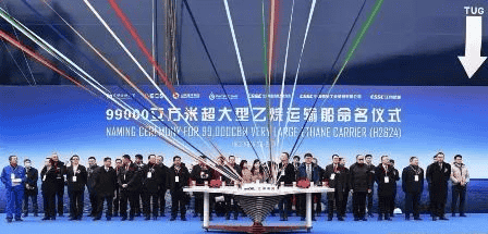 12月28日,由中國船舶集團旗下中船貿(mào)易和江南造船作為聯(lián)合賣方,為交銀租賃和山東海洋集團下屬太平洋氣體船公司(Pacific Gas)建造的全球最大艙容、世界首制采用B型艙的99000立方超大型乙烷運輸船(VLEC)“PACIFIC INEOS BELSTAFF”正式命名交付。