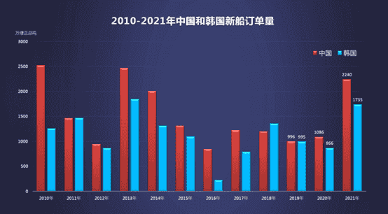 2021年,中韓造船業(yè)的搶單大戰(zhàn)終于塵埃落定。曾經(jīng)在上半年訂單量一路領(lǐng)先的韓國(guó)船企在最后時(shí)刻“放慢腳步”最終被中國(guó)反超。而在連續(xù)三年落后韓國(guó)之后,中國(guó)船企終于奪回世界第一寶座。