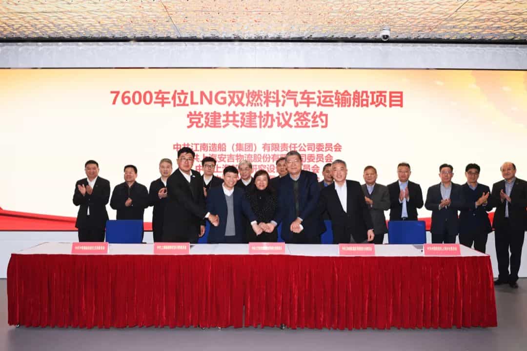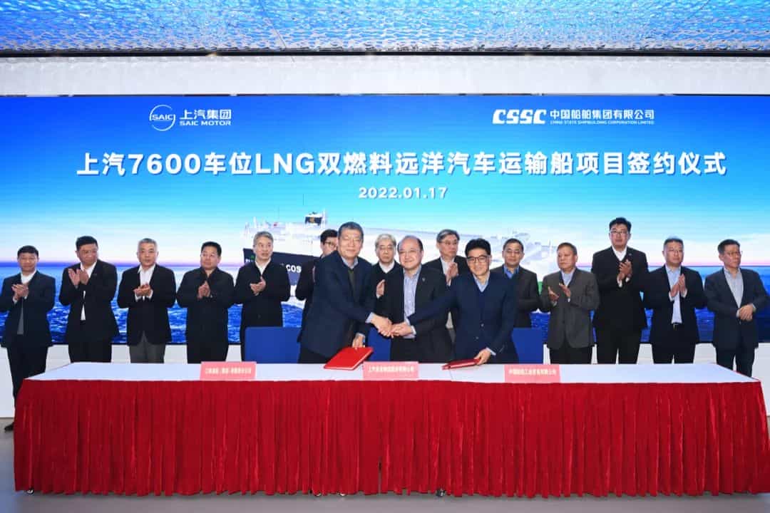 1月17日,中國船舶集團(tuán)有限公司旗下江南造船(集團(tuán))有限責(zé)任公司聯(lián)合中國船舶工業(yè)貿(mào)易有限公司與上海汽車集團(tuán)股份有限公司旗下上汽安吉物流股份有限公司正式簽訂2艘7600車雙燃料動(dòng)力汽車運(yùn)輸船(PCTC)建造合同。