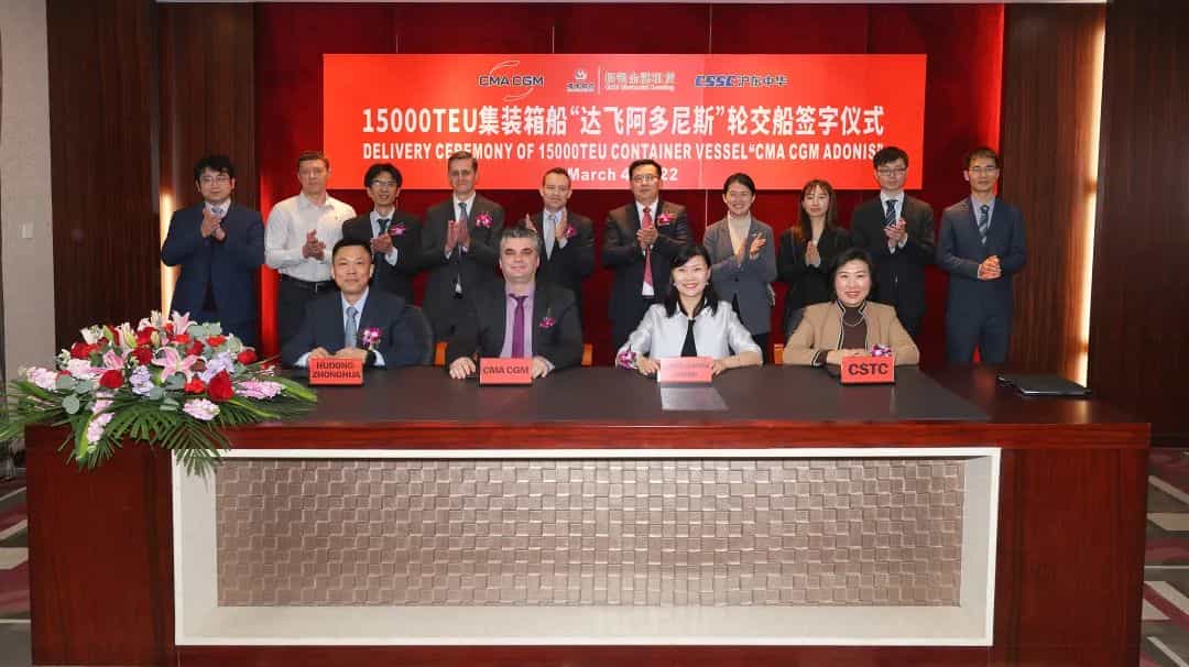 在15000TEU集裝箱船“達(dá)飛 阿多尼斯”號(hào)命名儀式上,船東致辭表示,中法船海巨頭將盡快開展更多合作,深化合作伙伴關(guān)系。僅四天后,13000TEU雙燃料集裝箱船項(xiàng)目首船燃料艙開建,意味著該項(xiàng)目全面啟動(dòng),滬東中華將為世界雙燃料集裝箱船“家族”增添新成員。