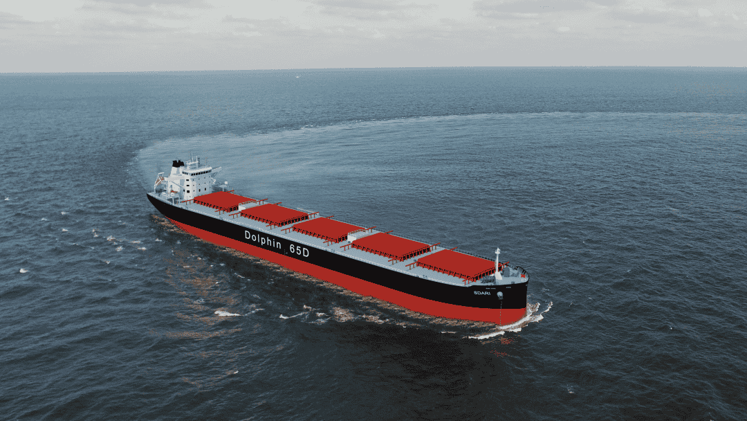 該型船采用中國船舶集團旗下上海船舶研究設計院的新一代船型設計,可航行于國內(nèi)近海航區(qū)及長江南京以下各港口,在吃水受限航道可實現(xiàn)載貨量最大化,而且該型船貨艙艙容大,可滿足絕大部分散裝貨品。