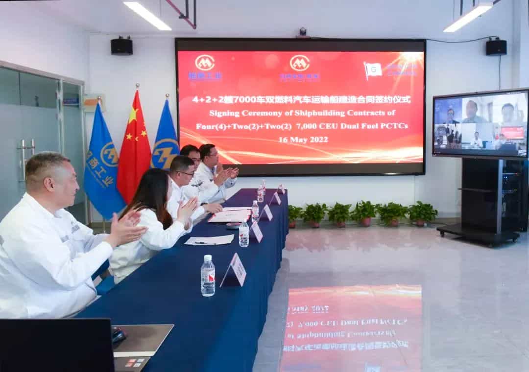5月16日,威海金陵與挪威船東Gram Car Carriers(以下簡稱“GCC”)旗下公司Global Auto Carriers通過視頻“云簽約”的形式簽訂4+2+2艘7000車汽車運輸船建造項目合同。