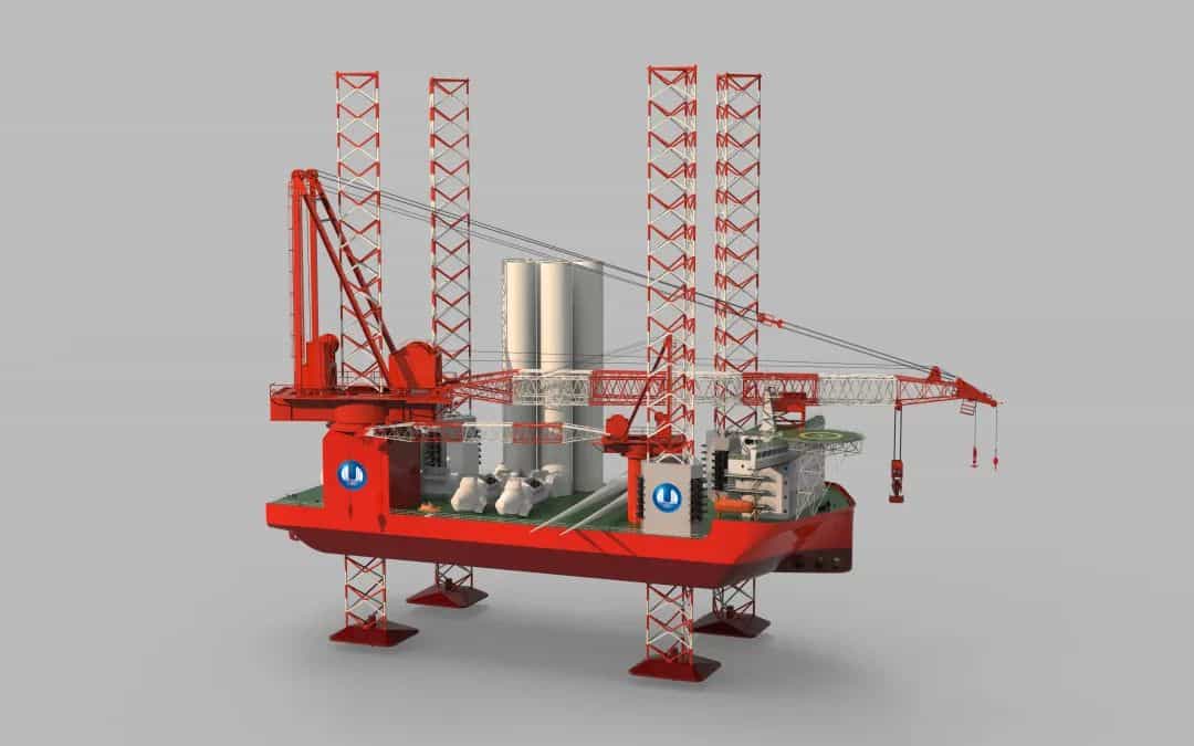 該平臺(tái)集運(yùn)輸、自升、自航、起重、動(dòng)力定位等多功能于一體,主要用于8-15兆瓦(MW)的海上風(fēng)電機(jī)組安裝工作,兼顧重量1800噸以下海上風(fēng)電機(jī)組基礎(chǔ)施工,可攜帶4套8MW或2套12MW海上風(fēng)電機(jī)組出海作業(yè)。