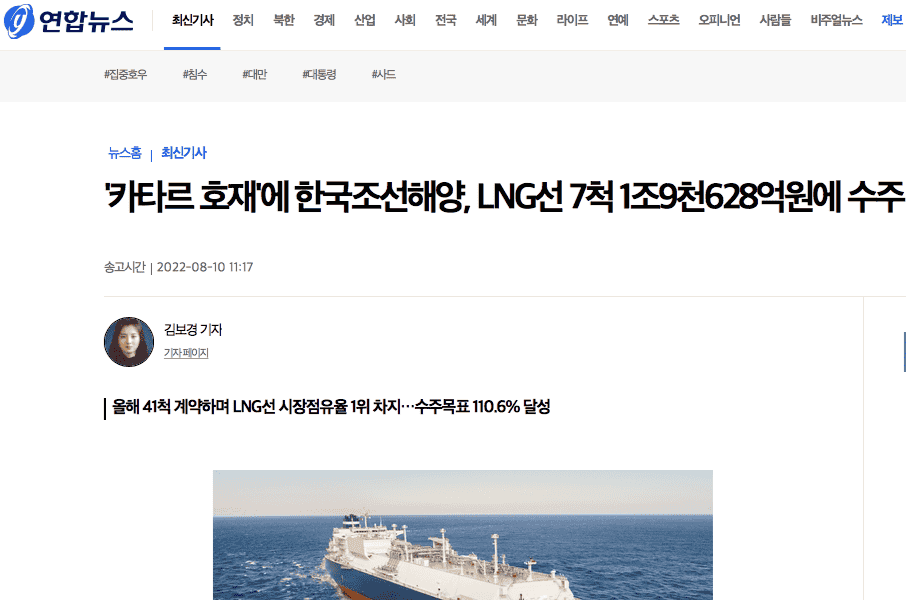 韓聯(lián)社報道稱,上述7艘LNG運輸船應該是卡塔爾能源LNG項目的后續(xù)生效訂單。如果上述判斷屬實,截至目前,韓國船企的卡塔爾能源相關項目LNG運輸船訂單已生效33艘,其中韓國造船海洋已生效17艘。