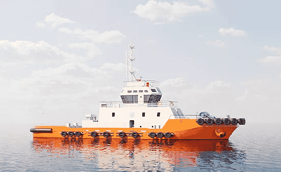 該船總長39米,型寬10.5米,設計吃水3.7米,航速13節(jié),系柱拖力(正拖)超過65噸,可實現碼頭快充2小時滿電,動力電池容量滿足1天的工作需要,具有零排放、無污染、低噪音、能耗少等性能優(yōu)勢。