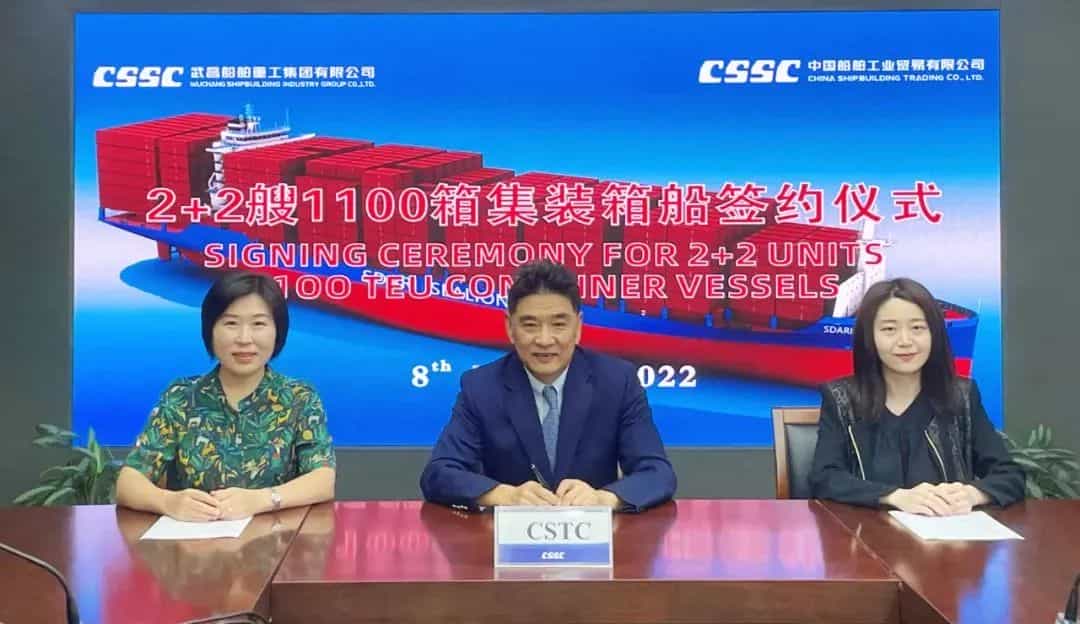 日前,中國船舶工業(yè)貿(mào)易有限公司聯(lián)合武昌船舶重工集團(tuán)有限公司,與希臘船東以“云簽約”形式,簽訂了2+2艘1100TEU集裝箱船建造合同。