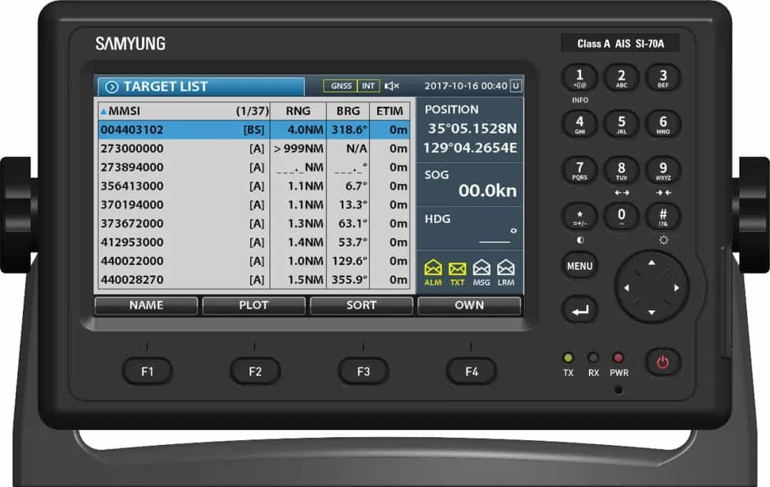 Class-A 通用 AIS ,符合 IMO MSC. 74(69)Annex,IEC 61993-2,ITU-R M.1371-3,ITU-R M.493-13,ITU-R M.825(DSC),IEC-60945,IEC-61162-1/2;7英寸彩色高清顯示屏,支持晝夜顯示模式;完全兼容各種航海設(shè)備的NMEA數(shù)據(jù)格式;AIS目標(biāo)可以與S-MAP+電子海圖疊加顯示(專利);可接收定位信號(hào)包括GPS、Galileo、GLONASS和北斗;新的圖形界面(GUI),提高用戶友好性和便利性;所有菜單可用中文、英文、韓文、俄文等顯示;滿足中國(guó)海事局對(duì)AIS中文編碼信息要求;獲得中國(guó)船級(jí)社CCS證書。