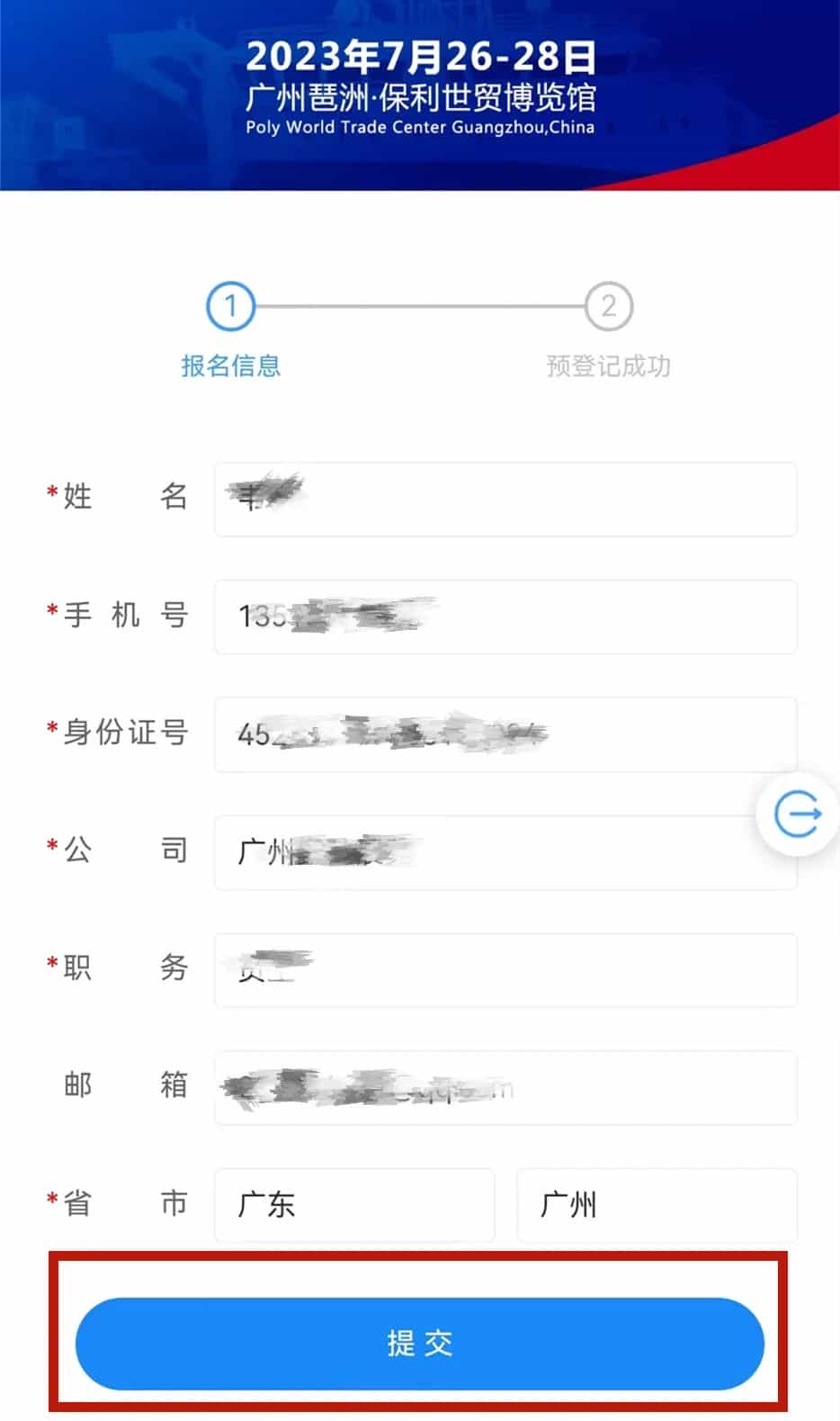 1、掃描上方參觀登記二維碼,進(jìn)入登記頁面。請仔細(xì)閱讀頁面內(nèi)容,按要求填寫姓名、身份證號(hào)、公司、職務(wù)、電子郵箱、手機(jī)號(hào)、微信號(hào)等信息,并點(diǎn)擊“提交”。