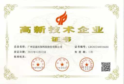 富森環(huán)保于2016年在新三板掛牌,并被認(rèn)定為國家高新技術(shù)企業(yè),2017年被認(rèn)定為廣東省超高壓水射流清洗智能裝備工程技術(shù)研究中心,2022年被認(rèn)定為“專精特新中小企業(yè)”和“創(chuàng)新型中小企業(yè)”。