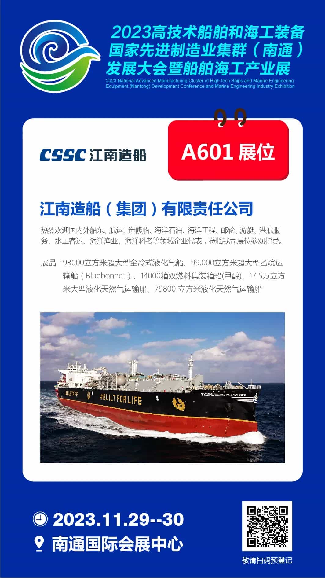 2023年11月29-30日,南通國(guó)際會(huì)展中心A601展位,江南造船與全球船舶人相聚南通,走進(jìn)世界級(jí)船舶海工先進(jìn)制造業(yè)集群!