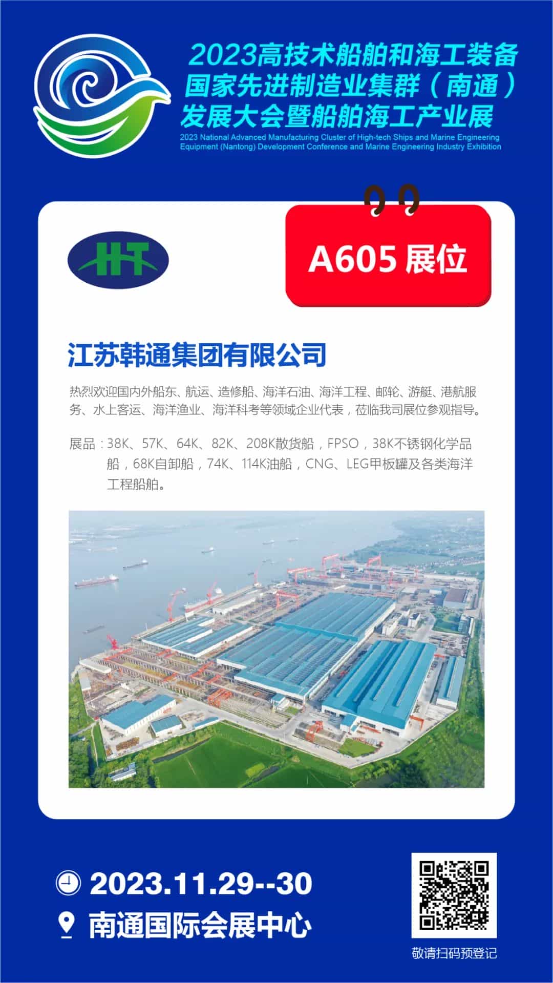2023年11月29-30日,南通國際會展中心A605展位,韓通集團(tuán)與全球船舶人相約南通,走進(jìn)世界級船舶海工先進(jìn)制造業(yè)集群!