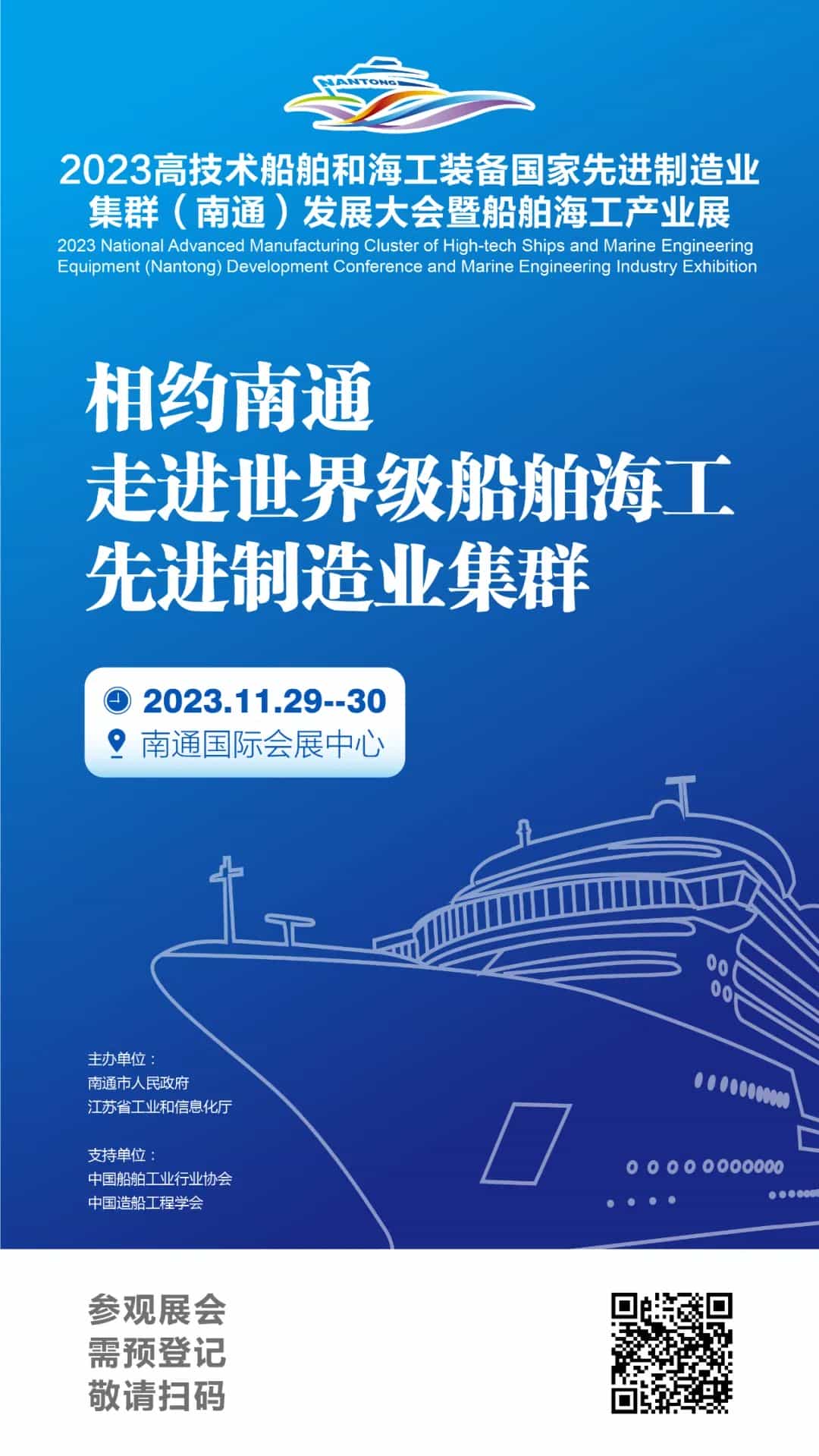 由南通市人民政府、江蘇省工業(yè)和信息化廳主辦的“2023高技術(shù)船舶和海工裝備國家先進制造業(yè)集群(南通)發(fā)展大會暨船舶海工產(chǎn)業(yè)展”,將于11月29日-30日在南通國際會展中心隆重召開。