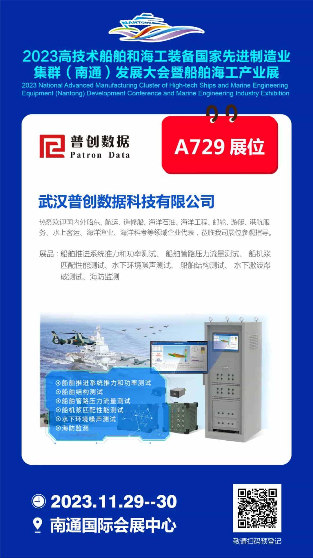 2023年11月29-30日,南通國(guó)際會(huì)展中心A729展位,普創(chuàng)數(shù)據(jù)與全球船舶人相約南通,走向深藍(lán),打造世界級(jí)船舶海工集群!