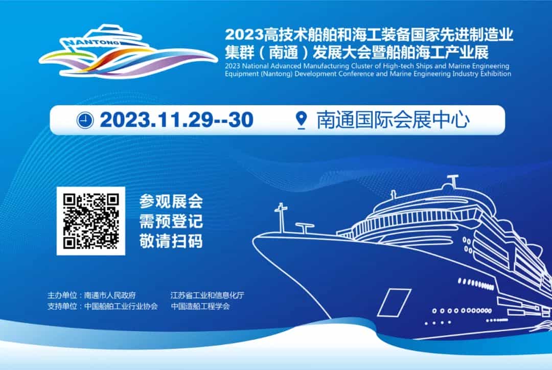 由南通市人民政府、江蘇省工業(yè)和信息化廳主辦的“2023高技術(shù)船舶和海工裝備國家先進(jìn)制造業(yè)集群(南通)發(fā)展大會暨船舶海工產(chǎn)業(yè)展”將于11月29日-30日在南通國際會展中心舉行。