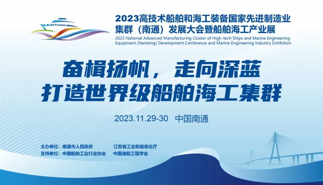 “2023高技術(shù)船舶和海工裝備國(guó)家先進(jìn)制造業(yè)集群(南通)發(fā)展大會(huì)暨船舶海工產(chǎn)業(yè)展”,將于11月29日-30日在南通國(guó)際會(huì)展中心召開。