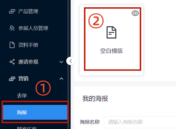 點擊“營銷”中的【海報】,選擇空白模板,進(jìn)入編輯頁面。