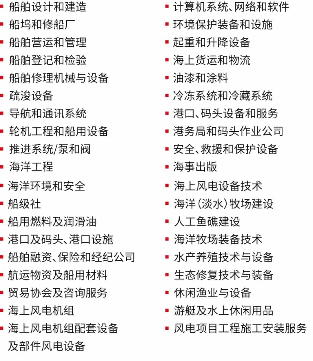 展會設(shè)置國際展區(qū)、船企展區(qū)、船用設(shè)備及先進材料展區(qū)、船舶通導展區(qū)、郵輪產(chǎn)業(yè)展區(qū)、海洋裝備展區(qū)、海洋牧場展區(qū)、海上風電展區(qū)、智能船舶及數(shù)字化轉(zhuǎn)型展區(qū)。