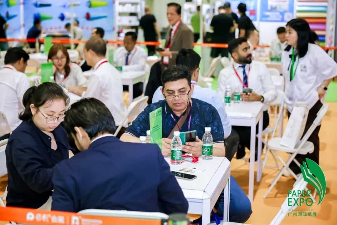 多家參展商與緬甸、巴基斯坦采購(gòu)商,在2024廣州國(guó)際紙展對(duì)接洽談