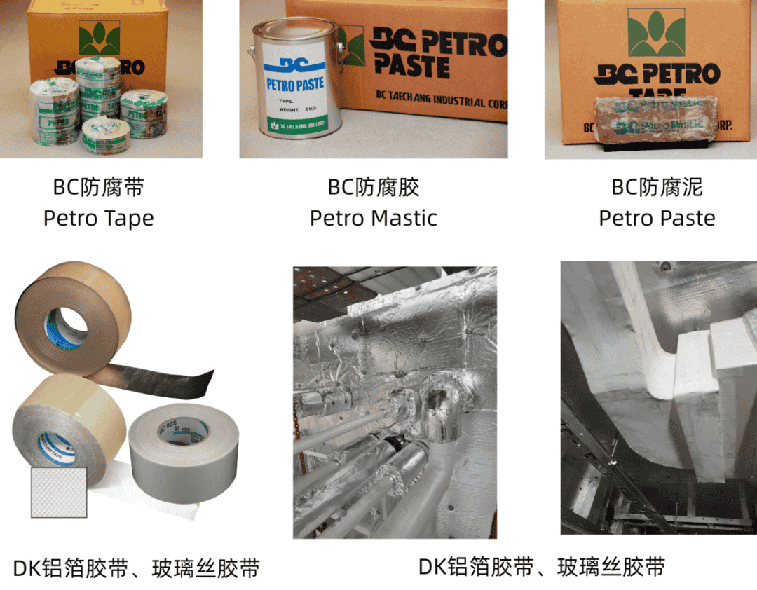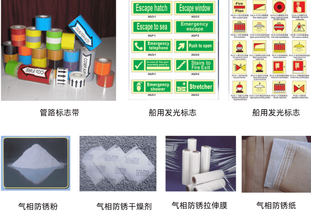 The main products of the company: NF anti spray tape, DK aluminium foil tape (DKGF-001D), DK glass cloth tape (DKGC-005), NL emergency plugging tape and SH marine flame retardant curtain material, Australian PSI pipeline cleaning equipment, BC anti-corrosion series, Marine polymer filter paper, Marine pipeline color identification marks and The photoluminescent marine safety signs and other ship supporting products ect.