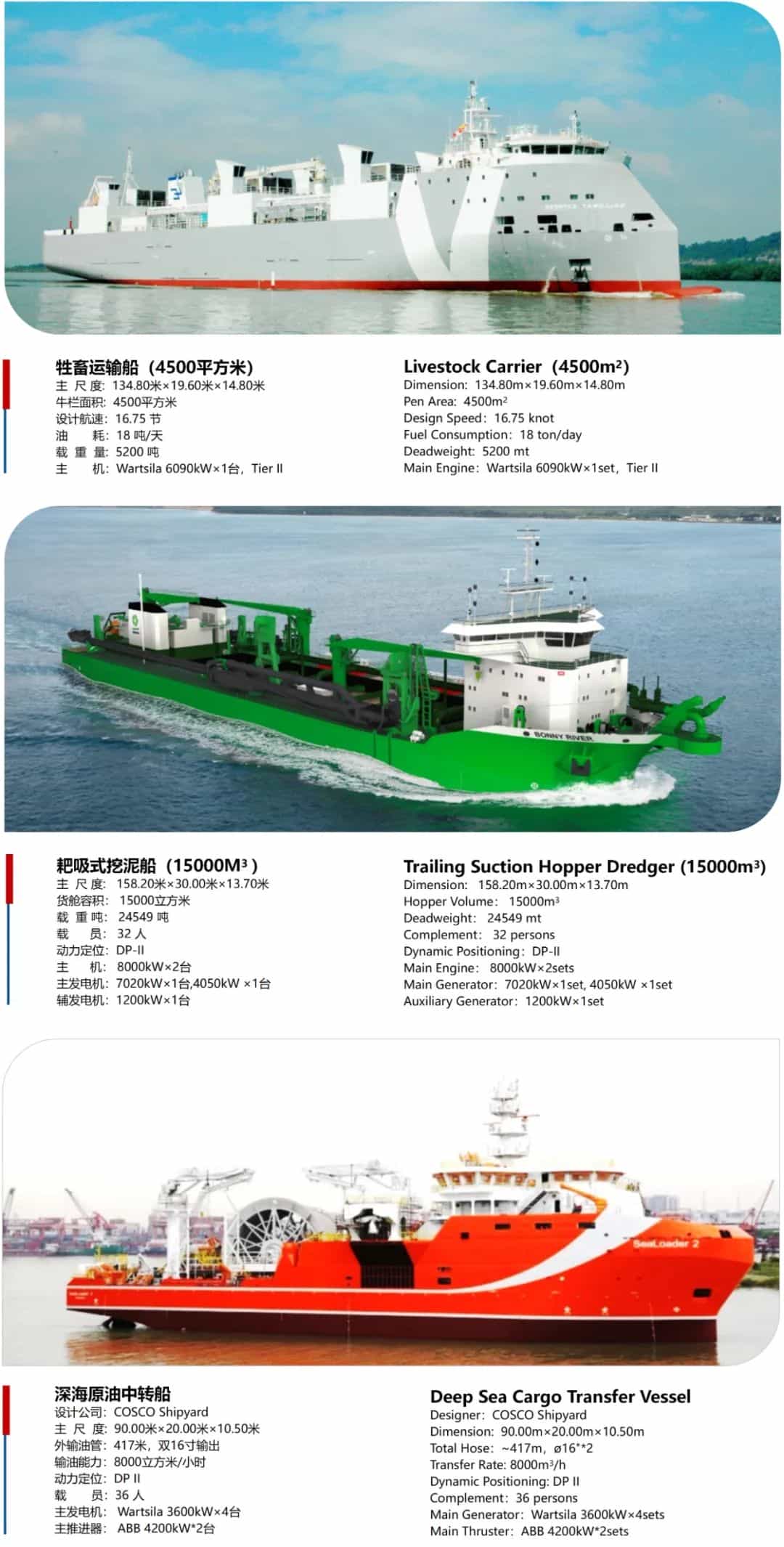 With annual capacity of more than 300 ships, CHI (Guangdong) always stands on the top of China in ship repair & conversion business; In newbuilding section, CHI (Guangdong) also has extensive experience on various special purpose vessel, merchant vessel and offshore engineering, including Livestock Carrier, Product Oil & Chemical Tanker, Dredger, Scientific Survey Vessel, Bulk Carrier, Container Ship, OSV (PSV/AHTS/ERRV), CTV and Semi-submersible Tender Drilling Rig etc. Meanwhile, CHI (Guangdong) is developing the new energy equipment as well, including wind farm floating platform, wind-turbine foundation, and wave power generation platform etc.