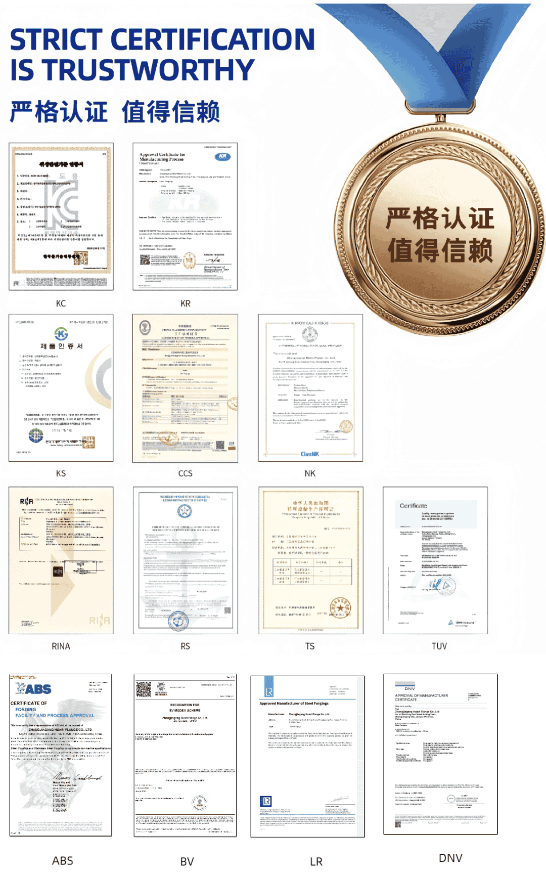 華日法蘭憑借過(guò)硬的技術(shù)和優(yōu)良的品質(zhì),相繼通過(guò)LR、KR、BV、DNV-GL、RINA、ABS、NK、CCS、RS各大船級(jí)認(rèn)證以及KC、KS、TUV和ISO9001質(zhì)量體系認(rèn)證。
